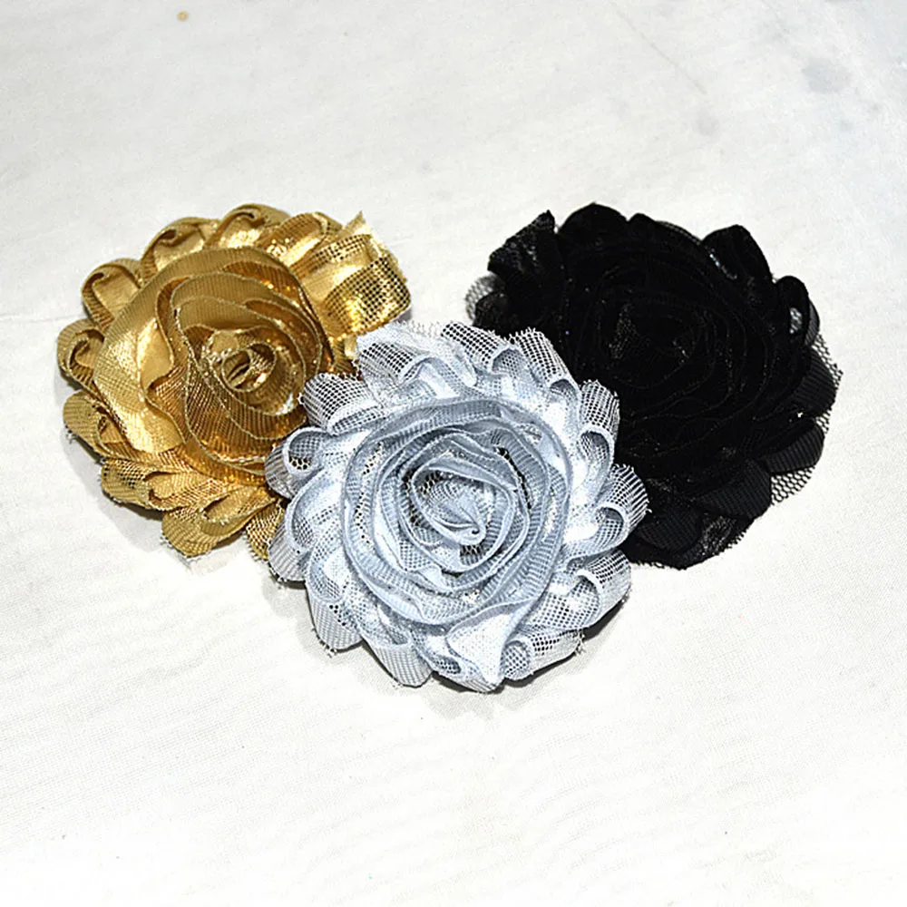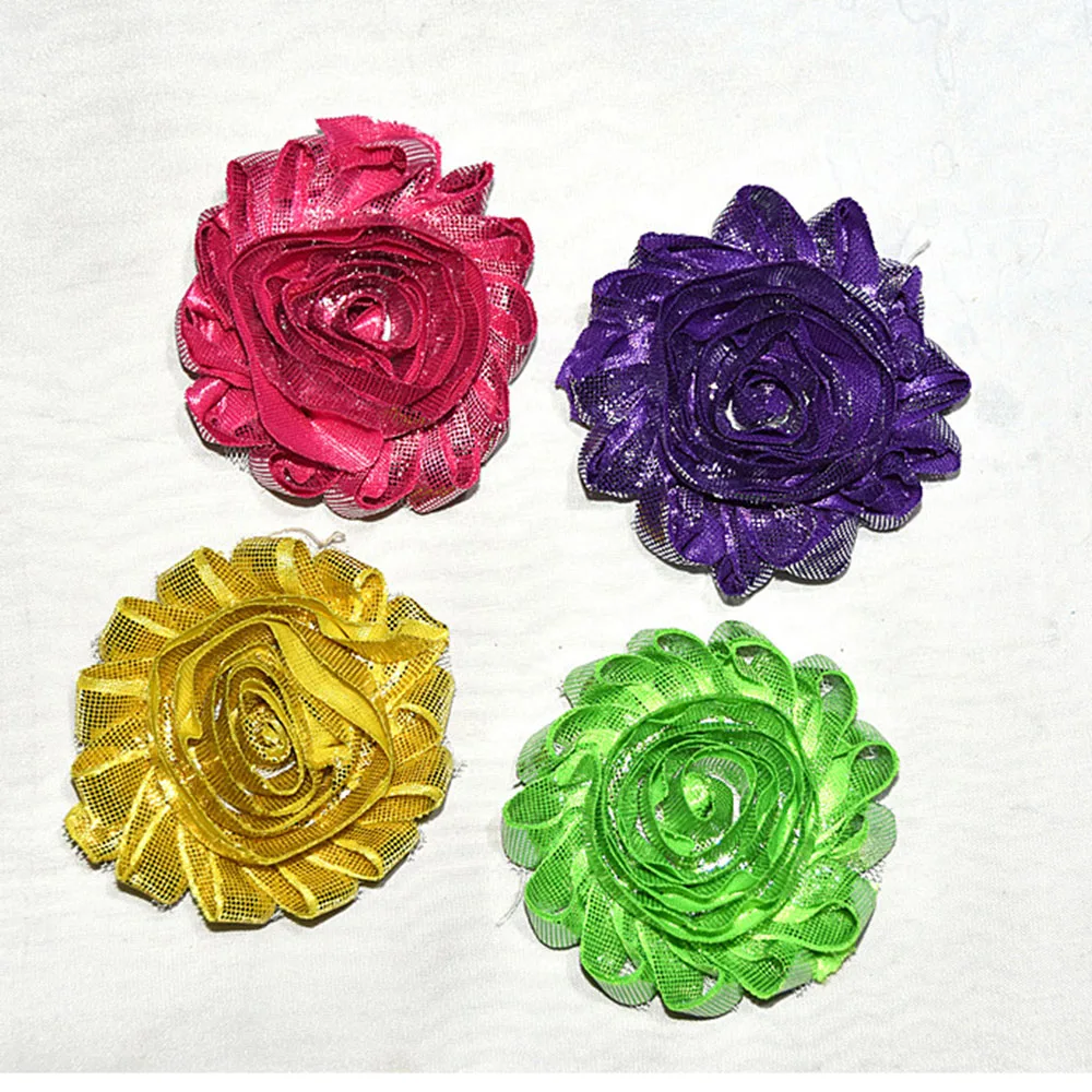 New Arrival 30 pcs/lot 2.5'' shabby metallic shiny flower shabby shiny flower shiny chiffon flower for hair apparel accessories